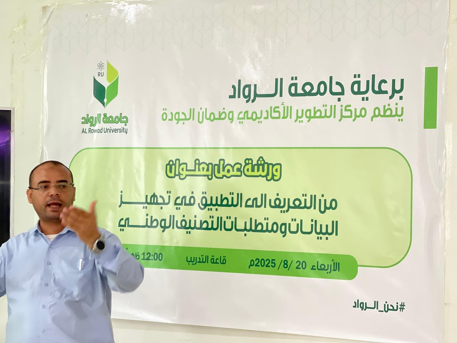 من التعريف الى التطبيق " ورشة جامعة الرواد لتجهيز البيانات ومتطلبات التصنيف الوطني " برعاية جامعة الرواد نظم مركز التطوير الأكاديمي وضمان الجودة اليوم الأربعاء الموافق 20 أغسطس 2025م ورشة عمل بعنوان: "من التعريف إلى التطبيق: ورشة جامعة الرواد لتجهيز البيانات ومتطلبات التصنيف الوطني" بحضور رئيس الجامعة أ.د. علي سلام، وعميدة الشؤون الأكاديمية ومديرة المركز د. عايدة الشامي،و أمين عام الجامعة أ. عارف احمد عامر والعمداء ورؤساء الأقسام العلمية ومدراء الإدارات وعدد من الموظفين. وفي مستهل الورشة ألقت د. عايدة الشامي كلمة ترحيبية عبرت فيها عن سعادتها بتعاون الكادر الأكاديمي والإداري، وأكدت على أهمية التصنيف الوطني للجامعات كخطوة استراتيجية نحو تعزيز جودة التعليم والبحث العلمي وخدمة المجتمع، ودعت جميع المشاركين إلى العمل بروح الفريق لتحقيق الجاهزية الكاملة للجامعة. قدم الورشة د. حامد ياسين – ضابط الارتباط مع وزارة التعليم العالي – حيث استعرض محاور الأداة الوطنية للتصنيف ومعاييرها، موضحًا آليات جمع البيانات وتعبئة القوالب المعتمدة. وقد تميزت الورشة بمناقشات تفاعلية أظهرت إلمام المشاركين بالمبادئ العامة للتصنيف، الأمر الذي ساعد على التركيز بشكل أكبر على الجوانب التطبيقية العملية. مخرجات الورشة: 1. إقرار خطة عملية لجمع البيانات المطلوبة من مختلف الكليات والإدارات. 2. توزيع المهام والأدوار بين الوحدات الأكاديمية والإدارية بما يتناسب مع معايير التصنيف. 3. تشكيل فرق عمل مشتركة لمتابعة تعبئة القوالب وتدقيق البيانات تمهيدًا لرفعها إلى الوزارة. واختتمت الورشة بالتأكيد على أن التصنيف الوطني يعد أداة مرجعية مهمة لقياس جودة الجامعات وتعزيز تنافسيتها محليًا وإقليميًا، وأن جامعة الرواد ماضية بخطوات ثابتة في هذا الاتجاه، بما يعكس التزامها بمعايير الجودة والاعتماد الأكاديمي وسعيها الدائم نحو الريادة والتميز. جامعة الرواد #نحن_الرواد #التصنيف_الوطني .